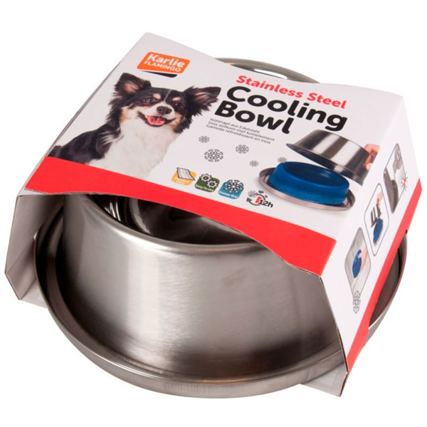 Dieser Edelstahlnapf kühlt das Trinkwasser Ihres Hundes an heißen tagen angenehm ab.