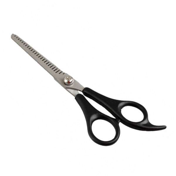 Die einseitige Effilierschere eignet sich zum Ausdünnen und Stylen des Fells. Stark verfilzte Haare können mit entsprechender Sorgfalt geschnitten werden.