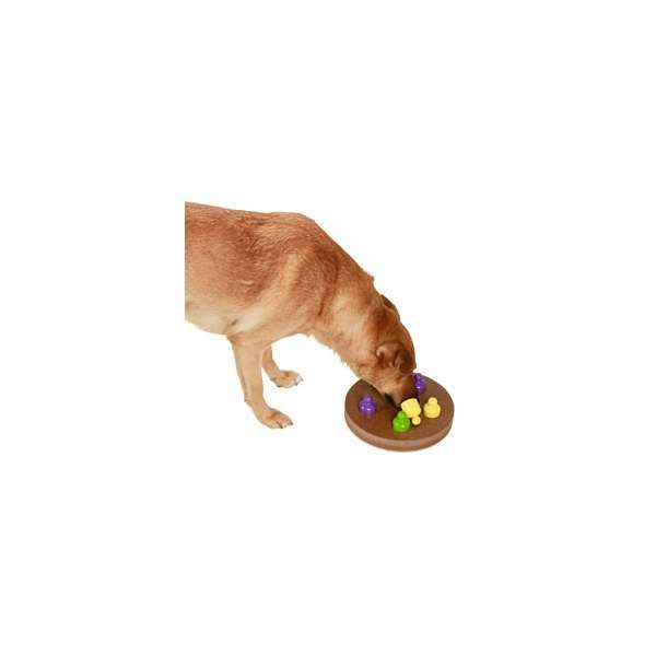 2 Spiele in einem! Hütchenspiel und Roulette. Bei diesen Brettspielen werden Snacks in Öffnungen gelegt, die dann mit Hütchen oder der Drehplatte verdeckt werden. Der Hund muss die Hütchen heben oder die Platte mit der Pfote oder Schnauze drehen, um an die Snacks zu kommen. Ein tolles Spiel auch für Hunde, die krank, operiert oder schon älter sind. Durch intensives Spielen wird auch die Bindung zwischen Mensch und Hund gefördert.
